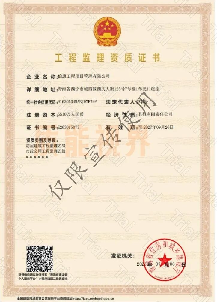 市政公用/房屋建筑监理+工程咨询造价资质加盟【伯康工程项目管理有限公司】作者: 质能视界 / 2025年10月29日 【伯康工程项目管理有限公司】 监理乙级:市政公用,房屋建筑 工程咨询乙级:建筑 造价乙级 版权声明:本站所有文章,如无特别说明或标注,均为本站原创发布。任何个人或组织,未经本站授权,不得以任何形式复制、转载、盗用、采集本站内容用于商业或非商业用途。如需使用,请联系站长获取授权。