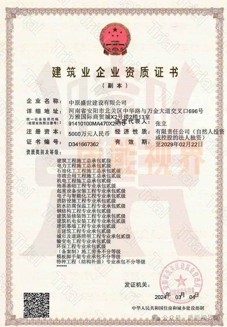 专包二级:起重设备安装、地基基础、钢结构、输变电、城市及道路照明、防水防腐保温、建筑装修装饰、消防设施、环保、建筑幕墙、古建筑、电子与智能化、建筑机电安装
