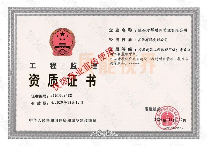 监理双甲级资质加盟:房建市政甲级+通信化工石油等五大专业乙级【陕西方得项目管理】作者: 质能视界 / 2025年9月7日 监理甲级:房屋建筑、市政公用 监理乙级:通信、化工石油、机电安装、电力、人防工程 造价甲级 招标代理甲级 工程咨询备案 版权声明:本站所有文章,如无特别说明或标注,均为本站原创发布。任何个人或组织,未经本站授权,不得以任何形式复制、转载、盗用、采集本站内容用于商业或非商业用途。如需使用,请联系站长获取授权。