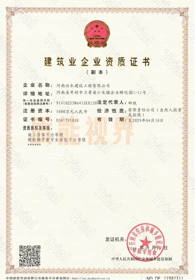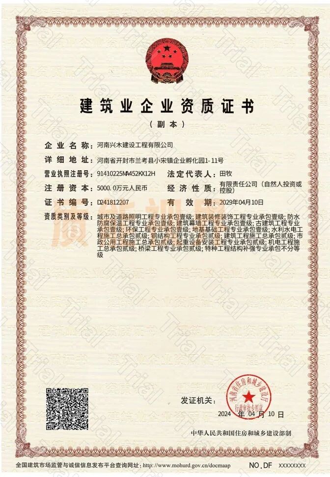 河南防水防腐与环保地基施工一级资质+水利AAA信用评价合作【河南兴木】 2026年1月10日 作者 质能视界 河南兴木建设工程有限公司 专包一级:防水防腐保温、环保、地基基础、建筑幕墙、古建筑、建筑装修装饰、城市及道路照明 专包二级:钢结构、桥梁、起重设备安装 总包二级:机电、建筑、水利水电、市政公用 不分等级:特种工程(结构补强)、模板脚手架、施工劳务 水利信用AAA