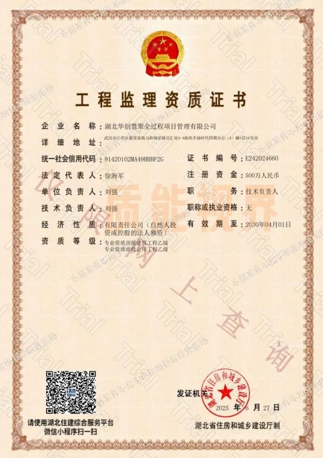 设计与监理资质加盟:市政建筑行业设计乙级+房建监理乙级【湖北华创慧聚】作者: 质能视界 / 2025年9月7日 设计乙级:市政行业(给水、道路、排水)、建筑行业(建筑工程) 监理乙级:房屋建筑、市政公用 工程咨询乙级:建筑、市政