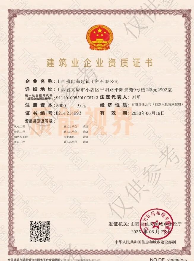 矿山工程资质加盟-配套机电工程+建筑工程+钢结构资质【山西盛世海建筑】作者: 质能视界 / 2025年9月13日 总包二级:机电工程、矿山工程、建筑 专包二级:钢结构 不分等级:施工劳务 版权声明:本站所有文章,如无特别说明或标注,均为本站原创发布。任何个人或组织,未经本站授权,不得以任何形式复制、转载、盗用、采集本站内容用于商业或非商业用途。如需使用,请联系站长获取授权。