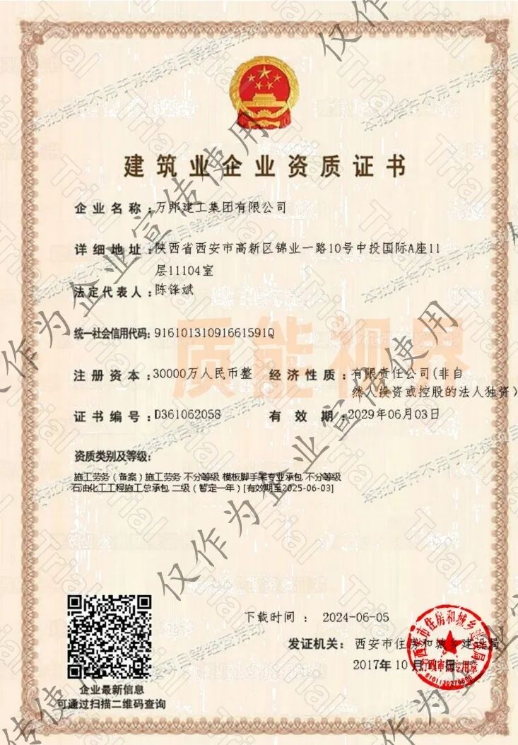 总包二级:市政公用、水利水电、公路工程、通信、石油化工