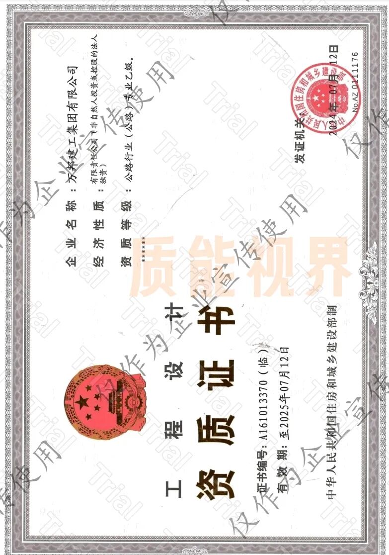 设计乙级:公路行业公路、计风景园林、市政行业(排水、道路、桥梁、给水)、建筑行业(人防工程、建筑工程)、电力行业(送电、变电、风力发电)、建筑智能化系统专项、农林行业(营造林工程、农业综合开发生态工程)、消防设施工程专项、建筑幕墙工程专项、环境工程专项(大气污染防治工程)、轻型钢结构工程专项、照明工程专项