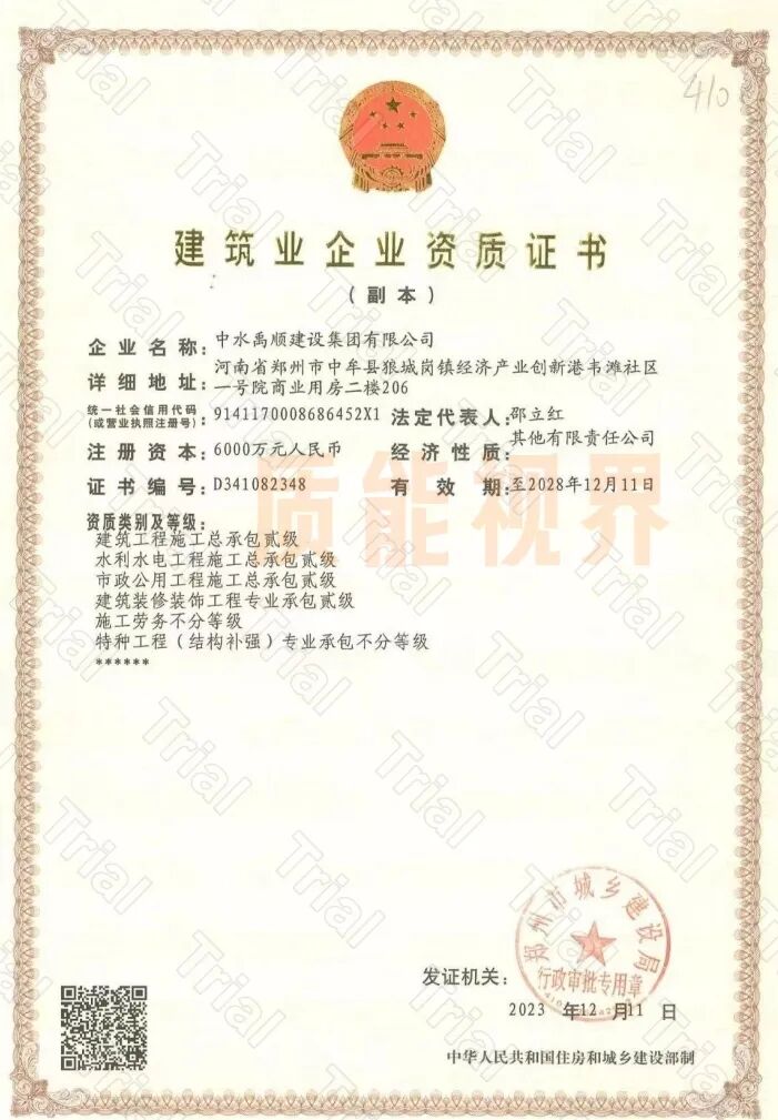 水利安全标准化二级加盟-建筑水利水电市政施工资质齐全【中水禹顺建设集团】作者: 质能视界 / 2025年9月8日 工程人的好帮手! 施工总包二级:建筑、水利水电、市政公用 专包二级:建筑装修装饰 不分等级:特种工程(结构补强)、施工劳务 水利安全生产标准化二级 版权声明:本站所有文章,如无特别说明或标注,均为本站原创发布。任何个人或组织,未经本站授权,不得以任何形式复制、转载、盗用、采集本站内容用于商业或非商业用途。如需使用,请联系站长获取授权。