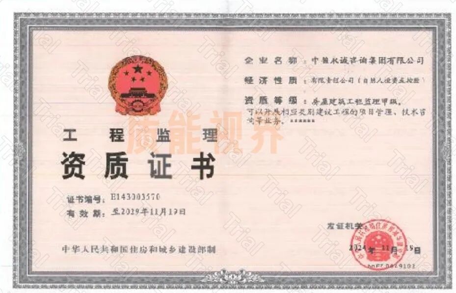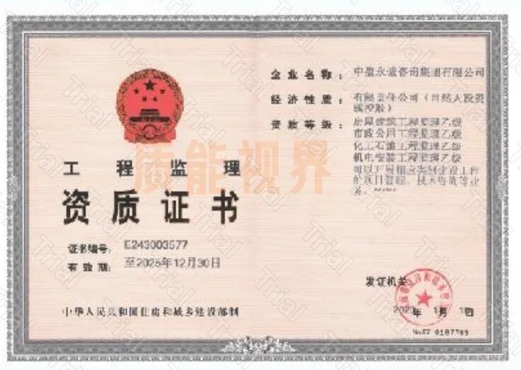 房屋建筑监理甲级;工程造价咨询企业信用AAA甲级;招标代理;工程咨询乙级【中盈永诚】作者: 质能视界 / 2025年10月29日 【中盈永诚咨询集团有限公司】 监理甲级:房屋建筑 监理乙级:市政公用、机电安装、水利工程施工 造价甲级 工程造价咨询企业信用AAA 招标代理/政府采购乙级 工程咨询乙级:建筑、市政 施工专包二级:装修装饰 版权声明:本站所有文章,如无特别说明或标注,均为本站原创发布。任何个人或组织,未经本站授权,不得以任何形式复制、转载、盗用、采集本站内容用于商业或非商业用途。如需使用,请联系站长获取授权。